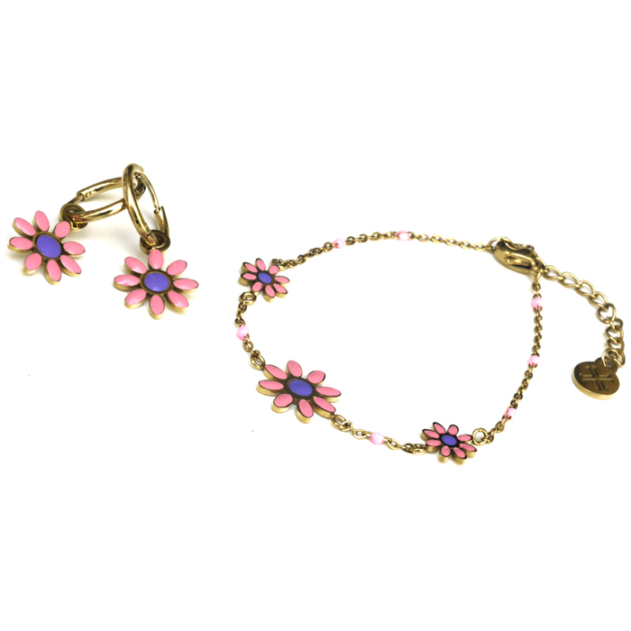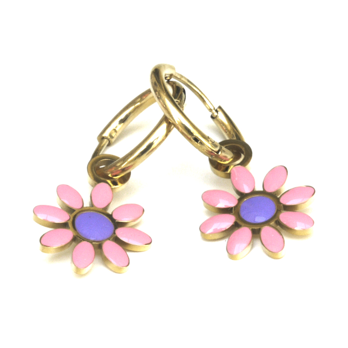 Small hoops with detachable enamel daisies in a pretty pink colour. Perfect for picnics, parties, festivals, holidays… in fact any days!