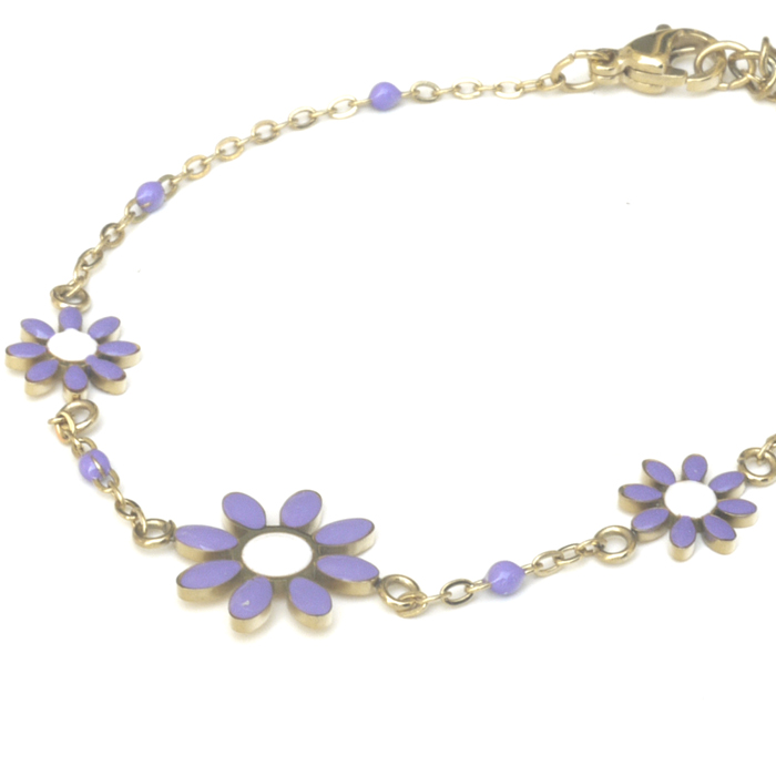 Delicate chain bracelet with enamel daisies in the prettiest purple colour. Perfect for picnics, parties, festivals, holidays… in fact any days!
