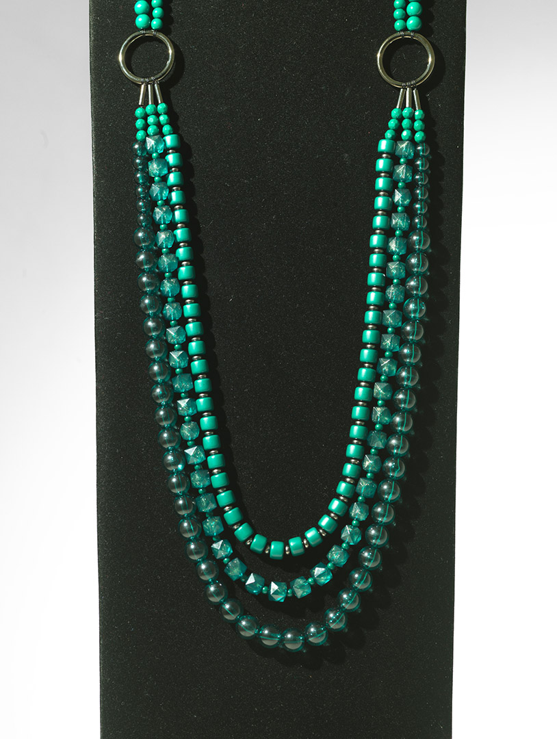 Bright Green Multi Strand Resin Beaded Necklace with Metal Hoops